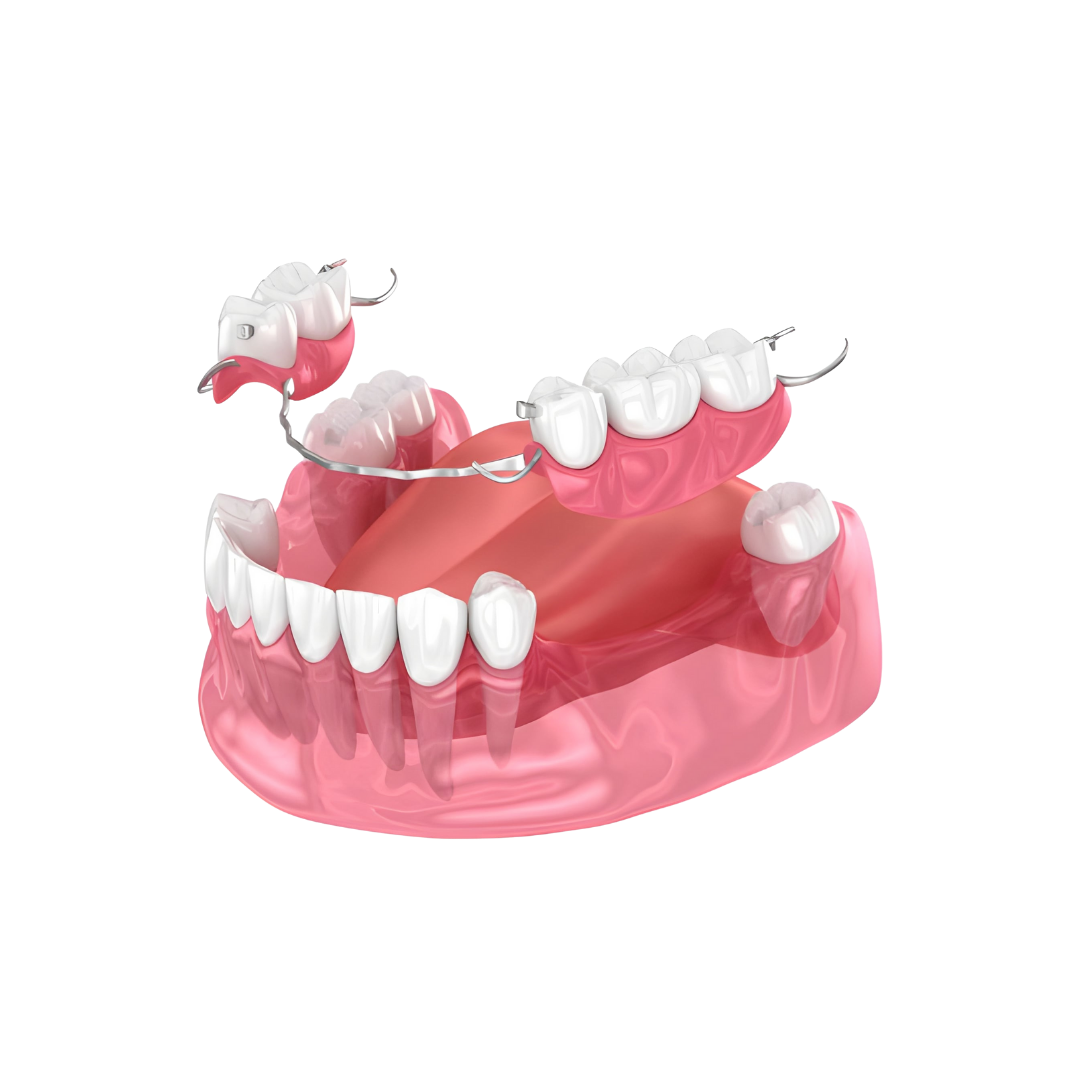 All partial dentures attach to remaining teeth and have a gum–colored portion meant to blend into the existing gum, with prosthetic teeth to replace the missing teeth.